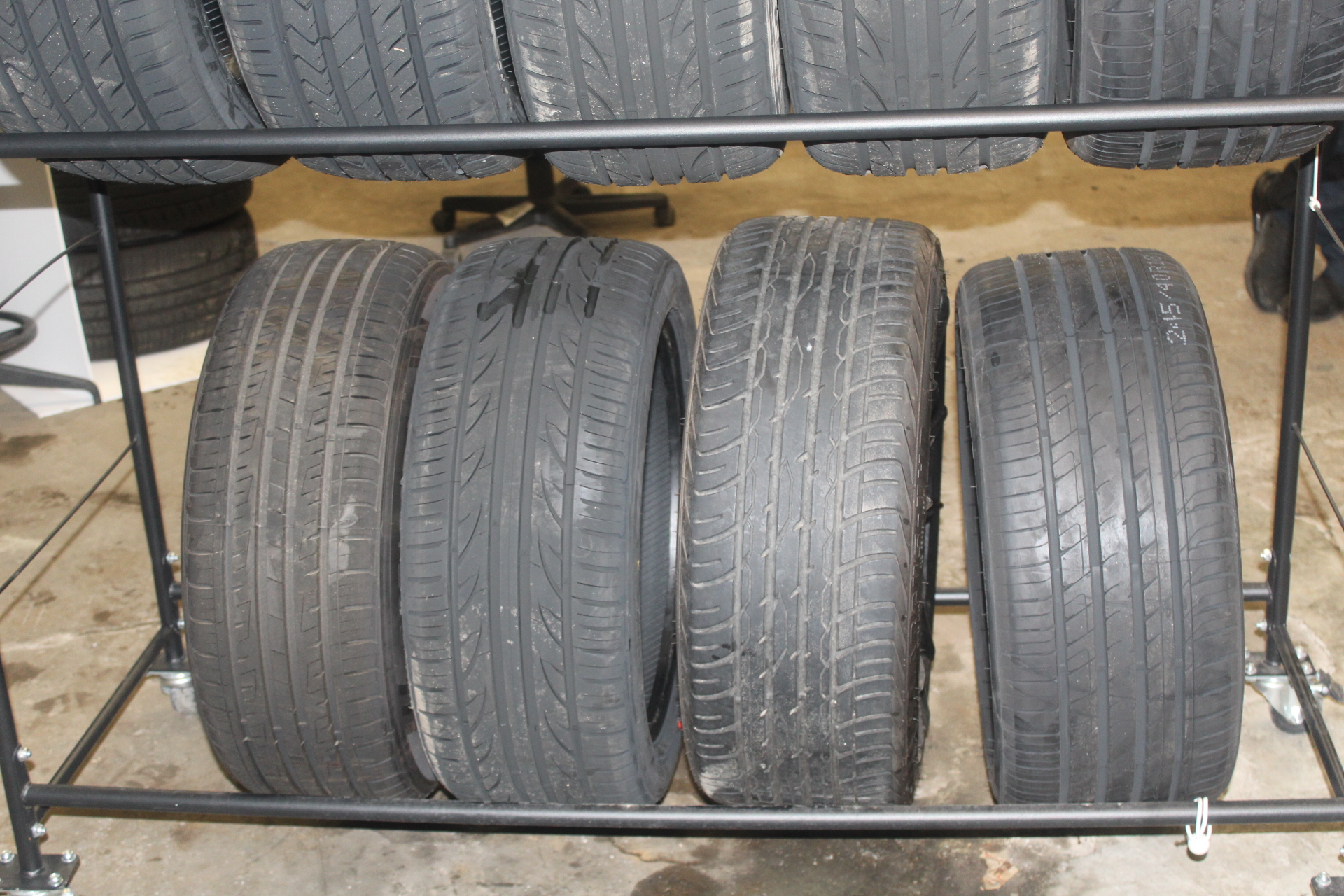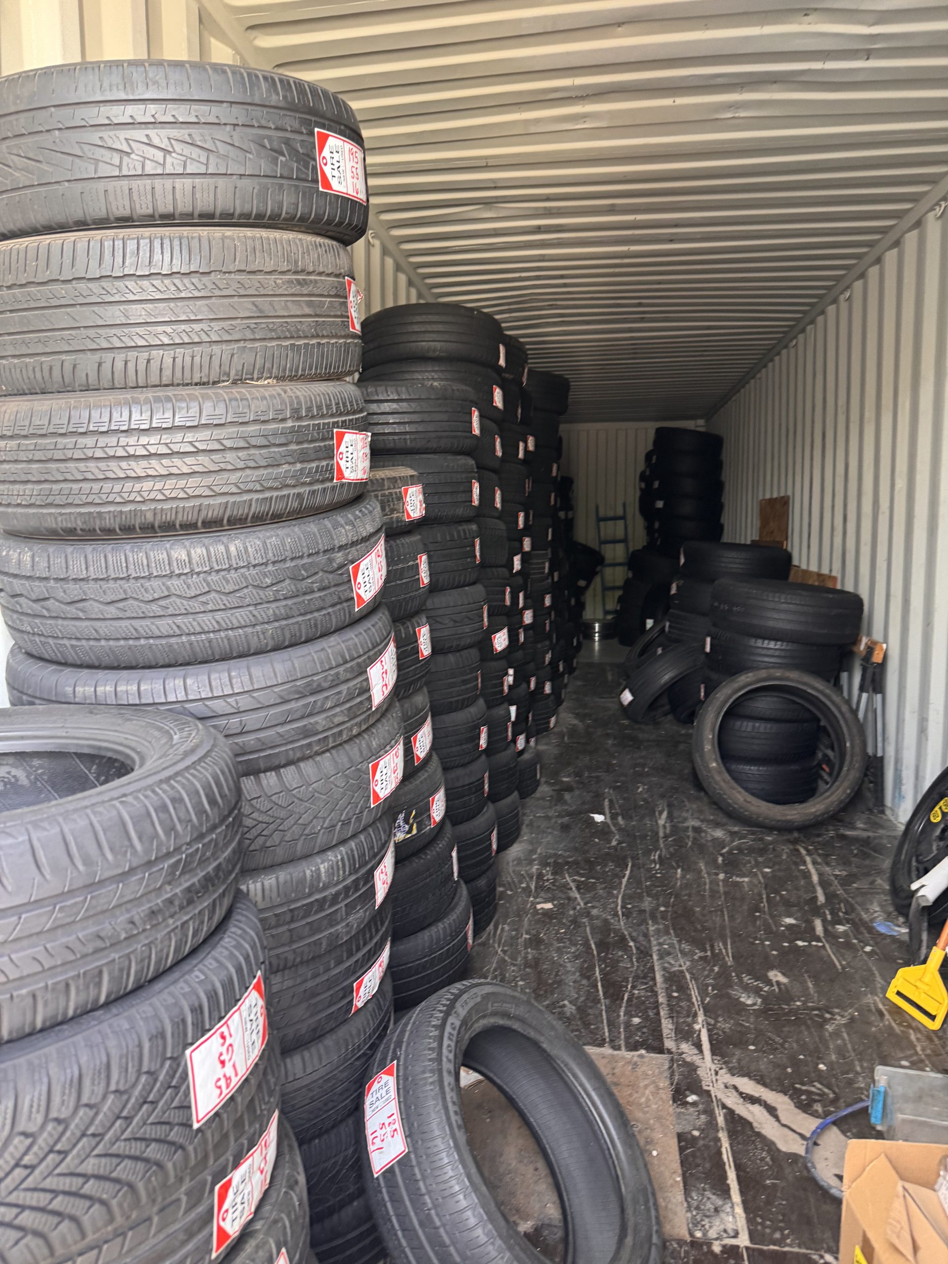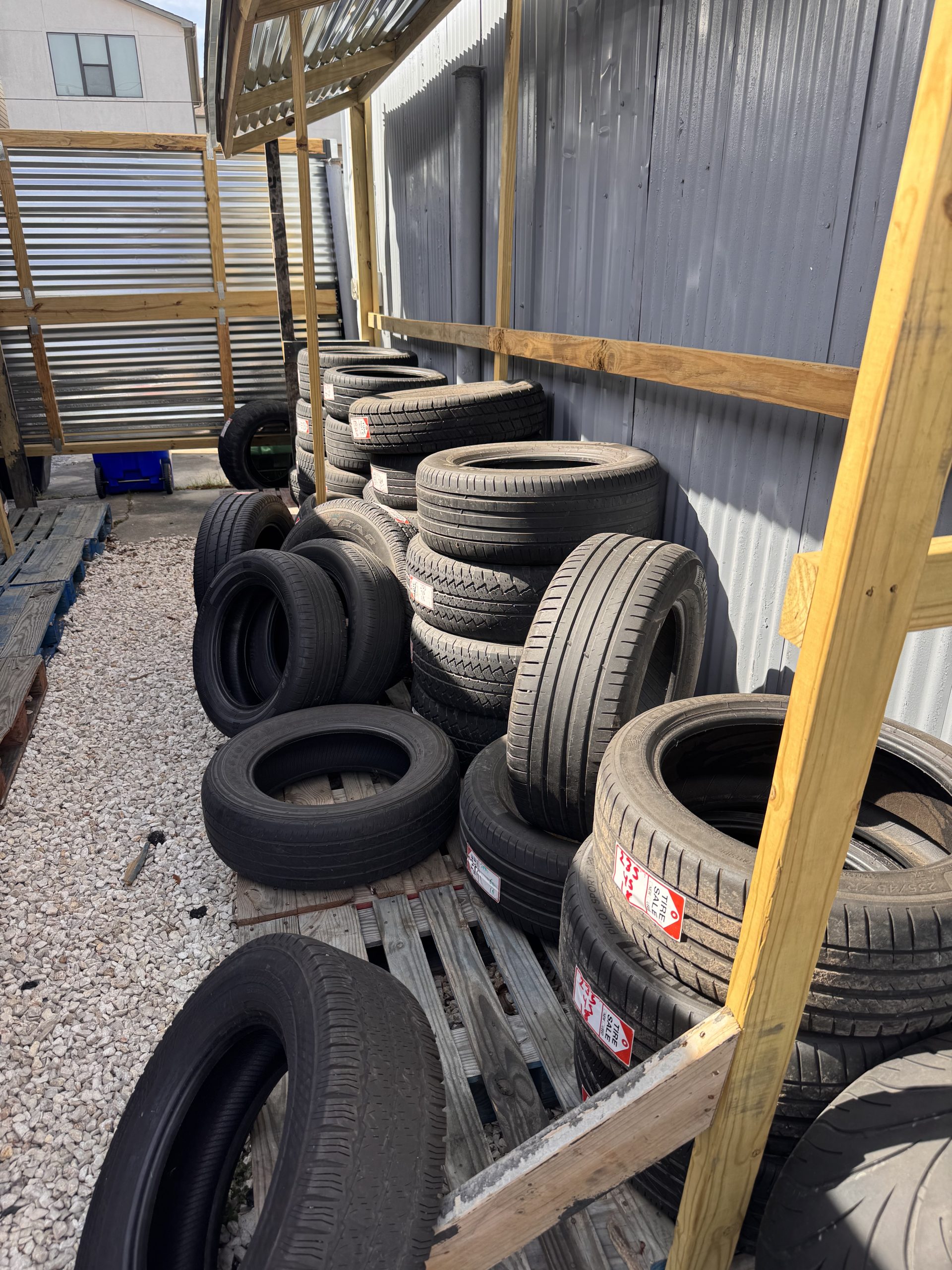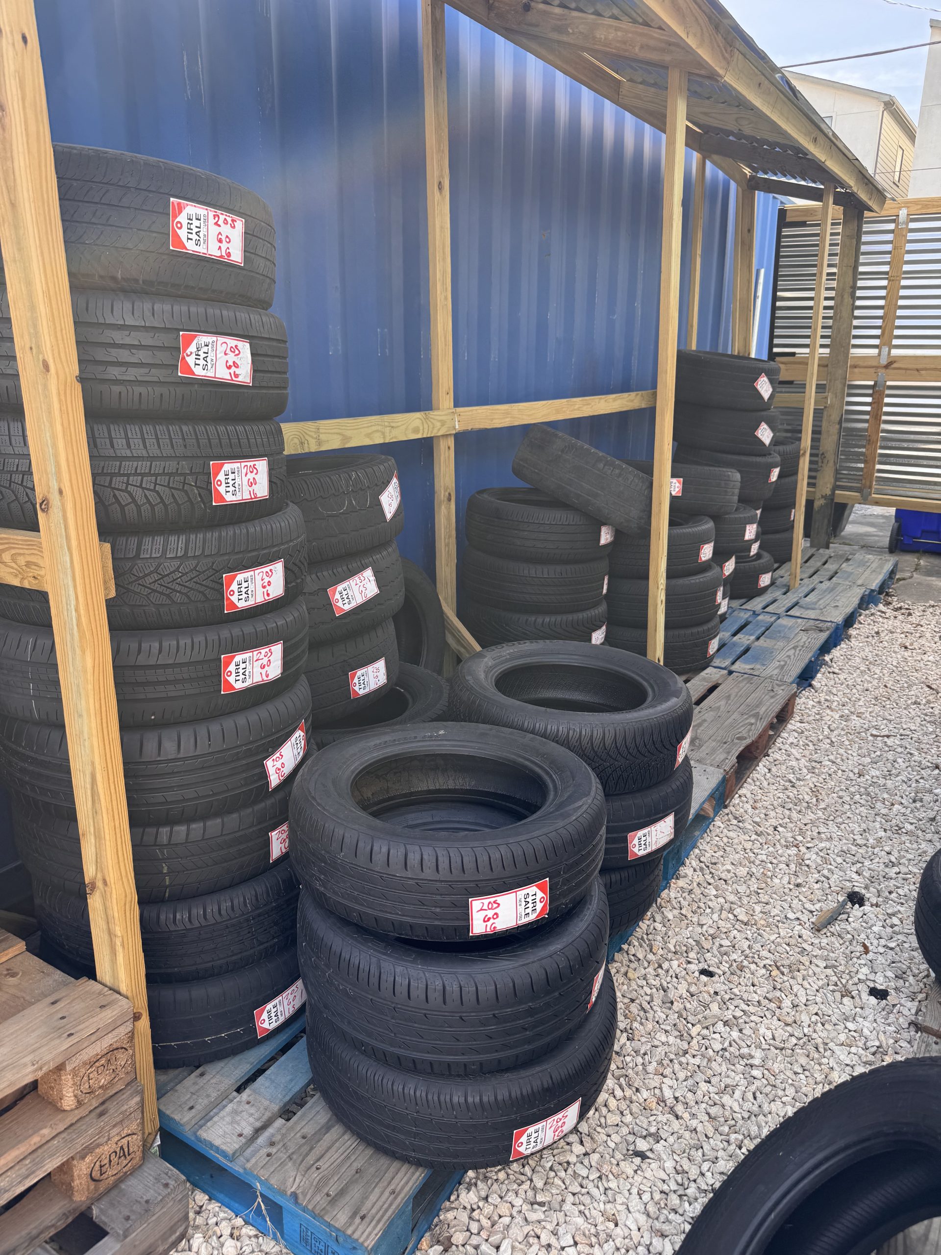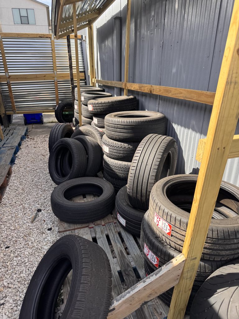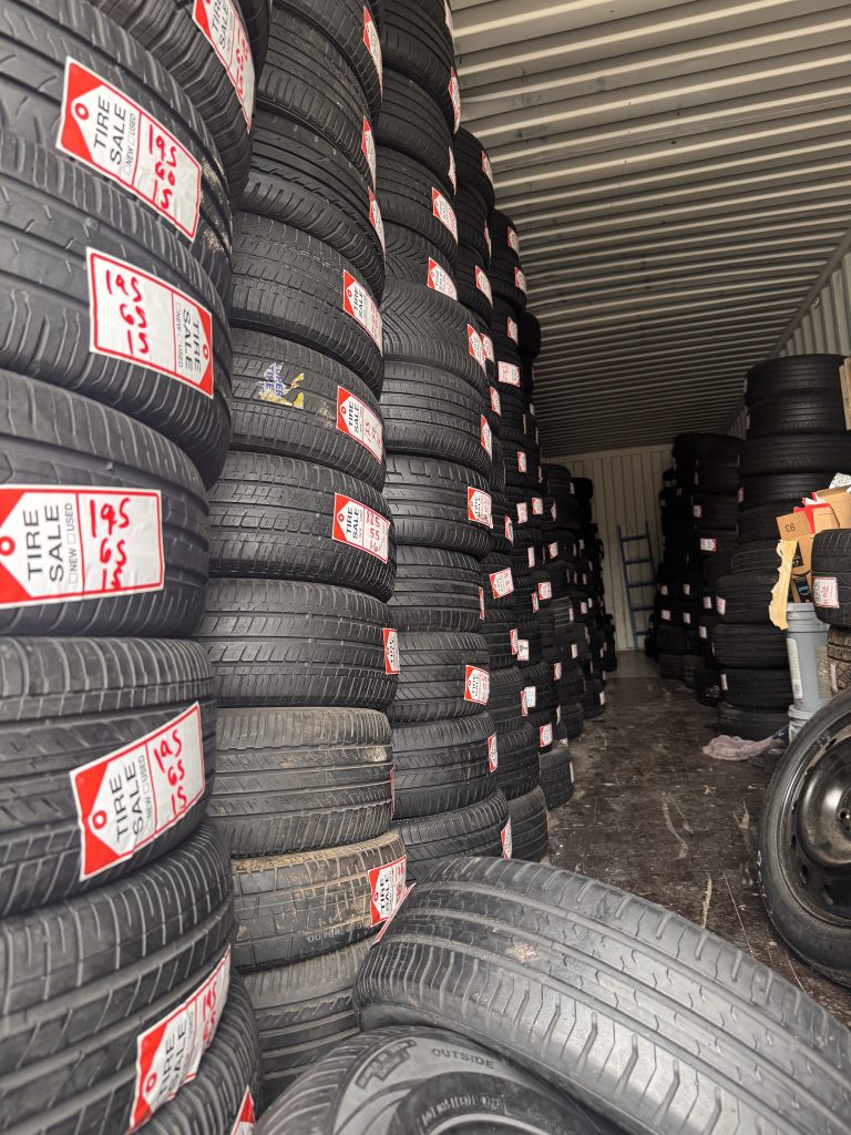- New and used tire inventory in shop