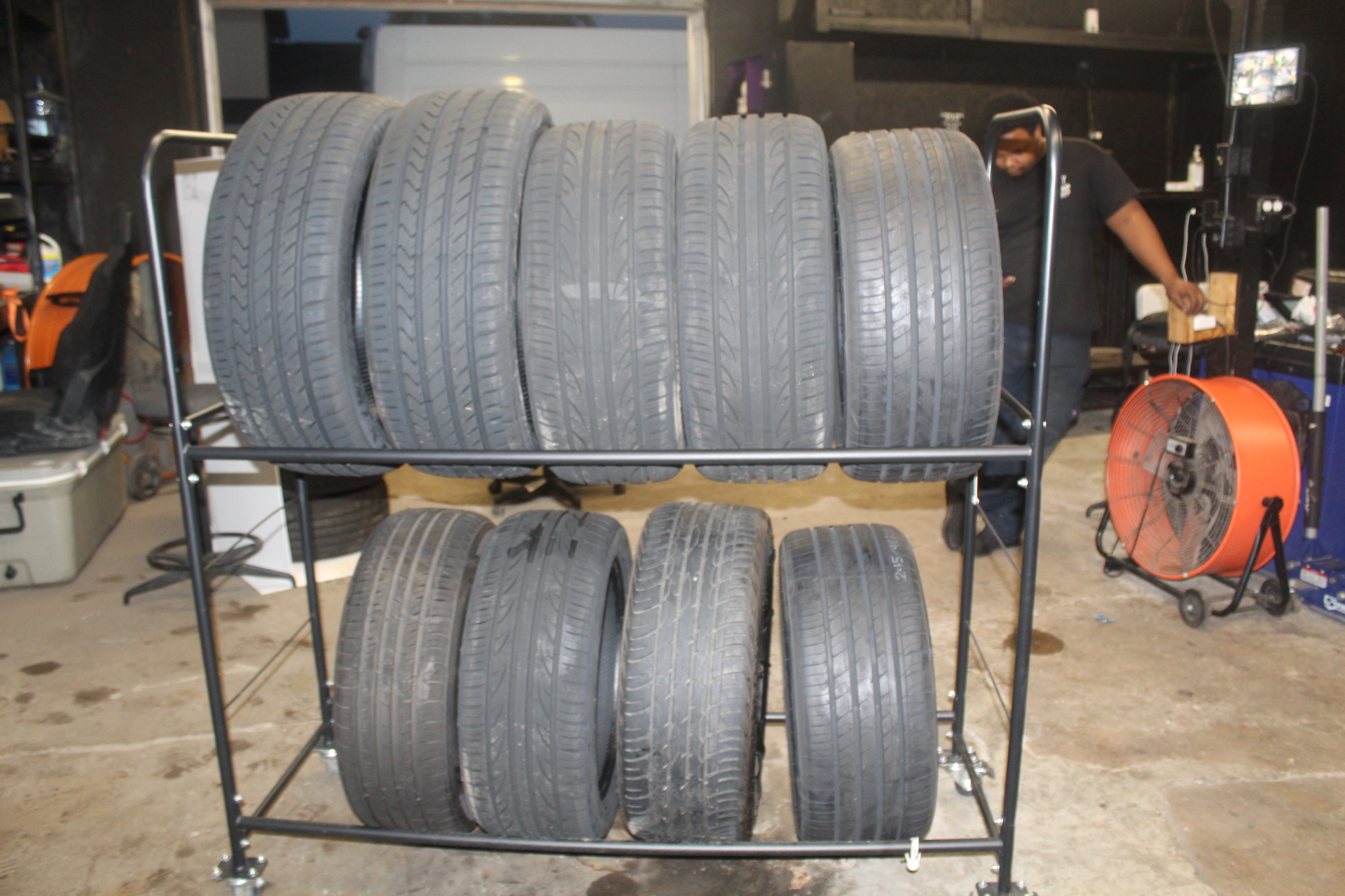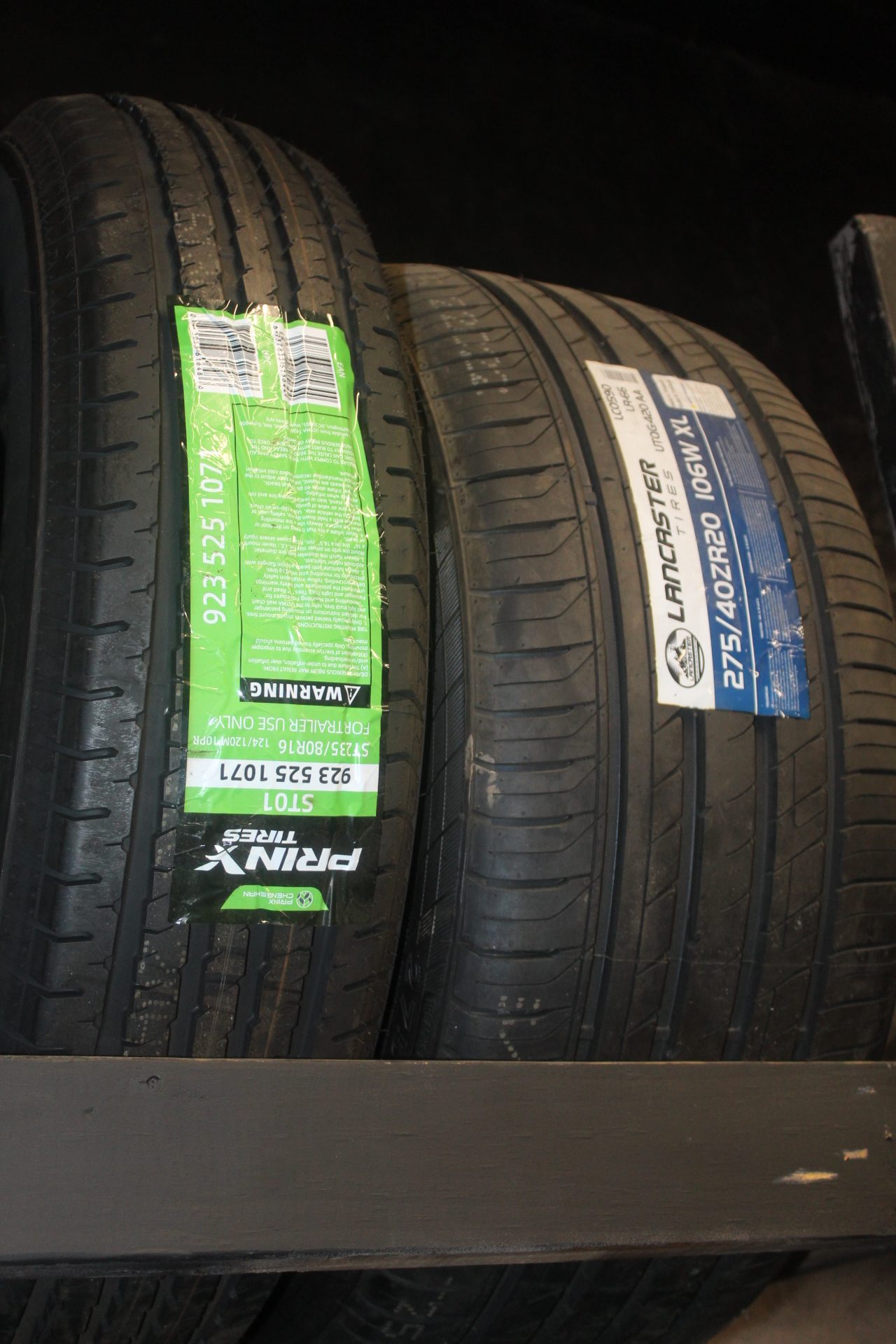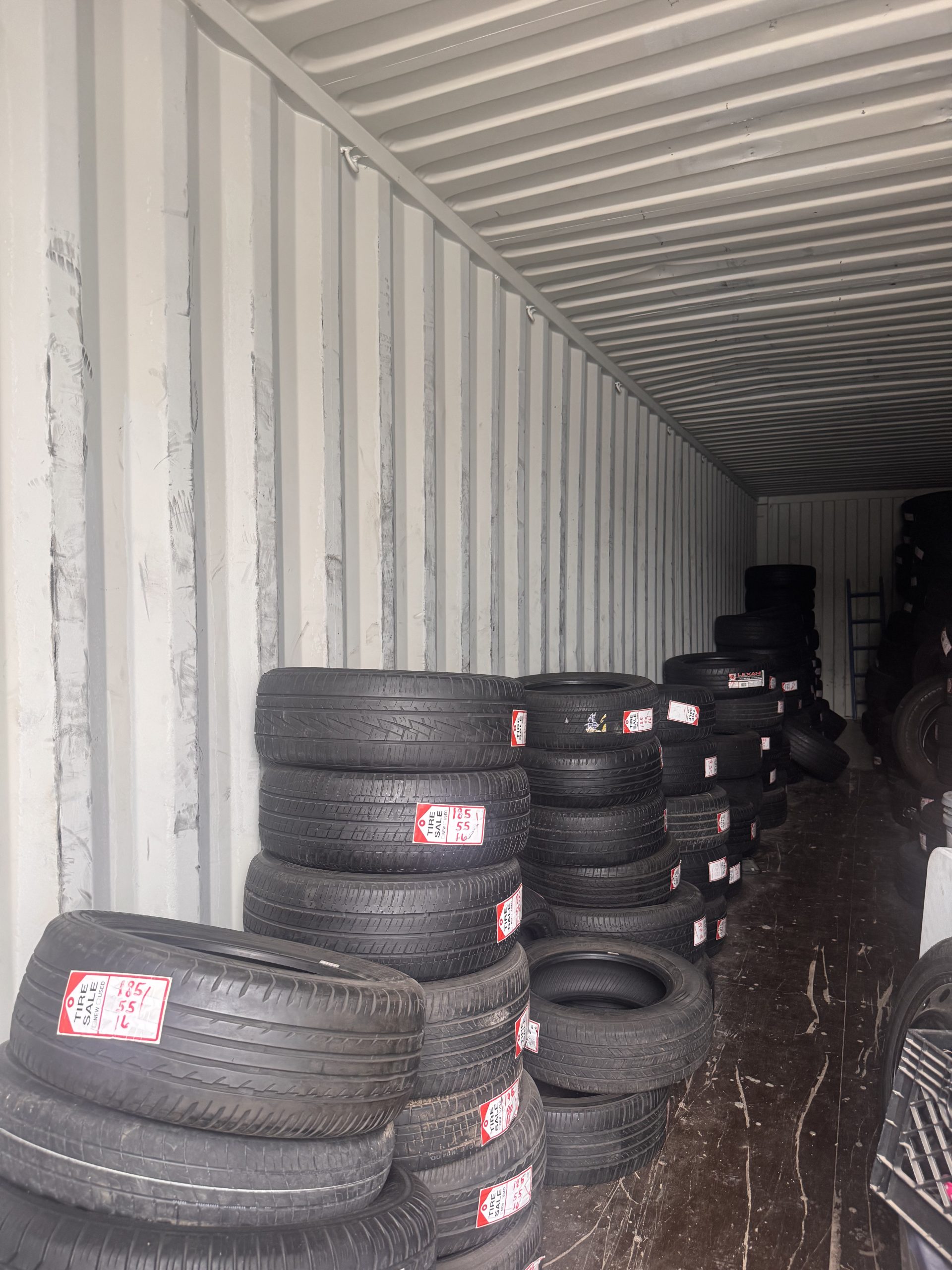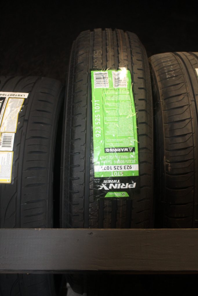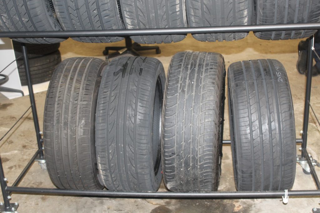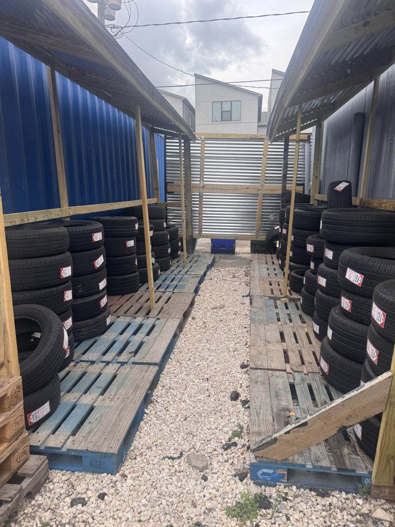 - New and used tire inventory in shop